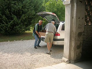 ![]() Ore 10:00 - "Fior di Loto" simbolo di "Mantova Nord" | ![]() Ore 10:45 - Gli "impalatori" al lavoro |